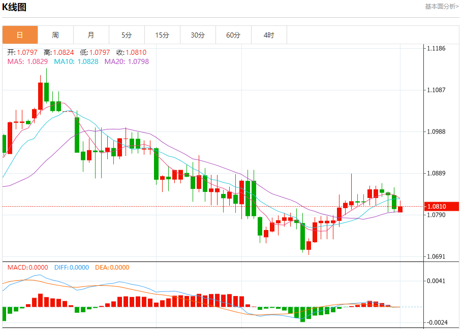 欧元/美元:截止北京时间21:20,欧元/美元上涨,现报1.0810,涨幅0.04%。纽市盘前,自上午以来,欧元兑美元汇率围绕EMA50波动,自上午以来没有表现出任何强劲的走势,等待负面动机推动价格恢复今天的预期看跌趋势,最初的目标是1.0765,提醒您突破该目标将直接推动价格向1.0645迈进。