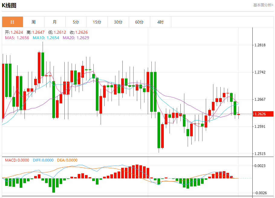 英镑/美元:截止北京时间21:20,英镑/美元上涨,现报1.2625,涨幅0.01%。纽市盘前,GBPUSD货币对保持其在1.2650以下的稳定性,以保持今天的修正看跌趋势有效,等待访问1.2540作为下一个主要目标。