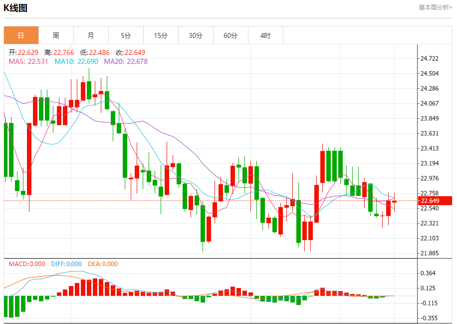 现货白银:截止北京时间21:20,现货白银上涨,现报22.650,涨幅0.01%。纽市盘前,白银价格面临强大的负面压力,试图回到熊市通道,但它回到了熊市通道上方交易,价格需要保持在这一水平以上,以保持今天的积极局面,并保证朝着23.00的主要积极目标前进。