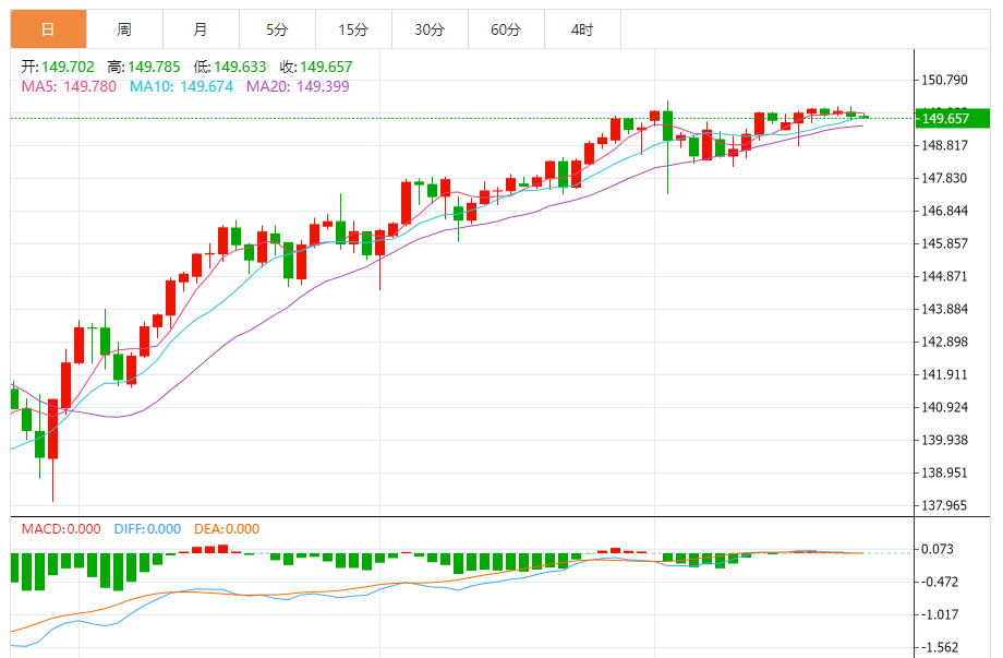 日元:美元/日元收跌,收报149.703,跌幅0.08%。技术面上,汇价上行的初步阻力位于149.937,进一步阻力位150.183,关键阻力位于150.373;汇价下行的初步支撑位于149.501,进一步支撑位于149.311,更关键支撑位于149.065。