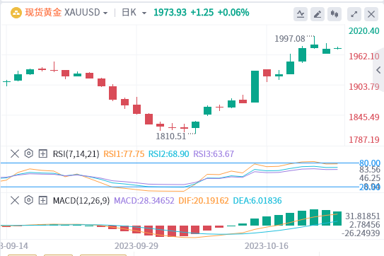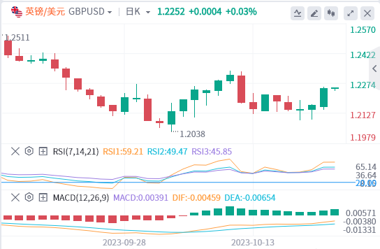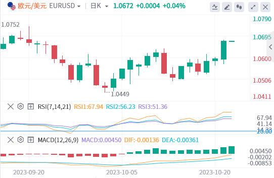 美元指数:截止发稿,美元指数交投于105.61附近。鉴于上周中东局势升级的威胁未能引发突破107大关,美元的举动不应完全令人惊讶。这可能被视为美元多头可能越来越不安的迹象,可能需要更深的回撤。现在的问题是,这是否会持续下去?看看本周剩下的时间,这对美元来说可能是一个棘手的问题,因为我们确实有一些高影响的数据事件,可以为美元提供支持。美国第三季度国内生产总值预计将是积极和稳健的,而美国PCE数据(美联储首选的通胀指标)预计将保持火爆。如果是这样的话,我们可能会有一周的上下半场,美元的疲软将持续到周三,然后本周将出现明显的复苏。绝对值得关注。技术面上,RSI技术指标在30之下,则可以看作有继续向下的趋势,或者处在一种超卖的状态下,很可能有技术性的反弹。我们可以通过比较RSI技术指标和价位之间的变化趋势,来观察是否在两者间存在技术背离现象。MACD技术指标处在其信号线之下看空。此外,价位低于其20天及50天移动平均线(分别位于105.82和105.95)。