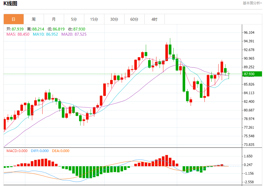 原油市场:截止北京时间20:24,美油下跌,现报87.911,跌幅0.28%。纽市盘前,原油价格显示出一些看涨倾向,以接近关键阻力89.65,这代表了除88.20支撑之外的下一个趋势关键,正如我们今天早上提到的,价格需要超过其中一个水平,以明确检测其下一个目标,这使我们保持中立。