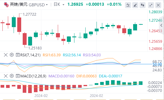 英镑:截止发稿,英镑/美元徘徊于1.26925附近。英镑/美元周一上涨,收报1.26912,涨幅0.28%。英国本周在经济日历上的表现仅清淡,周五公布的另一份美国非农就业数据(NFP)显示,投资者正准备再次关注美联储(Fed)将在多长时间内开始降息。技术面上,英镑/美元周一在1.2700手柄处发现了一个坚硬的技术障碍,但该货币对当天设法获得了微弱的涨幅,在收盘时上涨了约四分之一个百分点。该货币对继续从200日简单移动平均线(SMA)1.2578找到技术支撑,但近期技术阻力位1.2700限制了看涨势头,并阻止了上行反弹至去年12月的峰值1.2800附近。