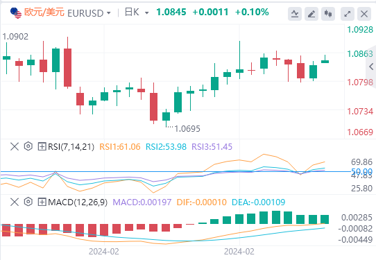 欧元/美元周五反弹,本周以小幅上涨收盘。周一欧洲早盘,该货币对在1.0850附近保持平静。