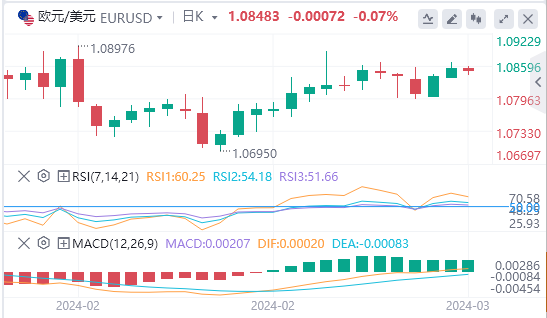 欧元/美元周一小幅收高,但周二早盘回落至1.0850区域。欧盟统计局将于本交易日晚些时候公布1月份生产者价格指数(PPI)数据。