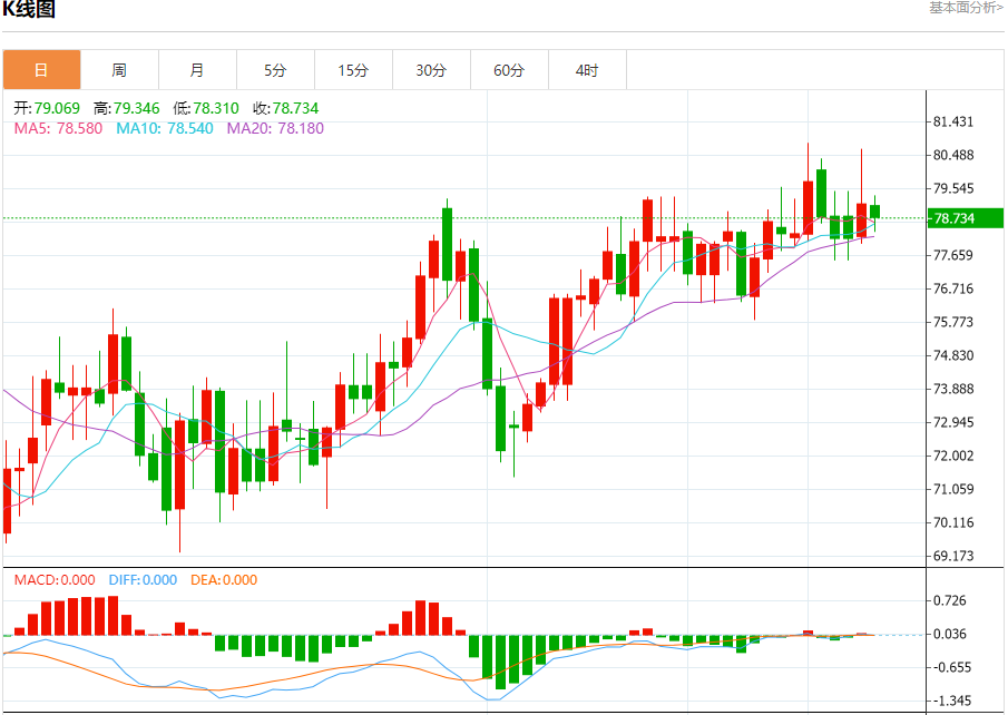 原油市场:截止北京时间21:27,美油下跌,现报78.750,跌幅0.42%。纽市盘前,原油价格显示出新的看跌倾向,可能会测试78.70至78.45之间的关键水平,这促使人们在即将到来的交易中保持谨慎,因为价格需要在这些水平以上盘整,以保证不会在即将到来的时期继续预期的主要看涨趋势,其第一个目标位于80.95。