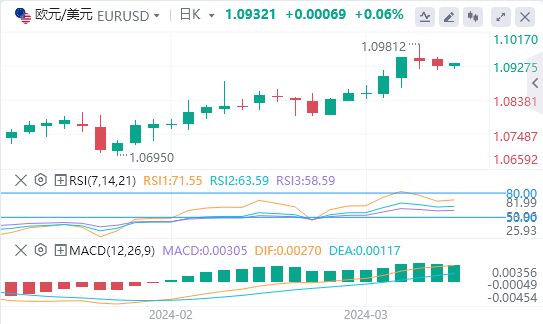 美元指数:截止发稿,美元指数交投于102.777附近。尽管鲍威尔的基调是鸽派的,就业数据喜忧参半,但美联储未来对放松利率的立场预计将在很大程度上受到定于周二公布的美国通胀数据的影响。美国劳动力市场在2月份的表现喜忧参半。尽管失业率上升,但收入数据略有放缓,而创造就业机会的步伐加快。宽松预期没有看到重大变化,市场普遍仍预计美联储将在6月首次降息。技术面上,日线图上的指标反映了市场情绪的喜忧参半。相对强弱指数(RSI)仍处于负值区域,但正斜率暗示看涨复苏,表明抛售势头可能正在减弱。虽然MACD处于平坦的红色柱线区域,但这也意味着空头正在失去卖出优势,可能为小幅看涨修正铺平道路。SMA情景进一步强调了看跌趋势,美元图表低于20、100和200天简单移动平均线。这支撑了占主导地位的看跌市场结构,但同时出现看涨逆转的迹象不能完全被忽视。