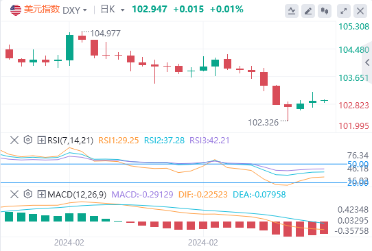 周二,由于美国2月CPI数据高于预期,美元指数于美盘大幅拉升,最高突破103关口,最终收涨0.082%,报102.93。截至目前,美元报价102.947。