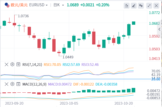 欧元/美元周一录得强劲涨势,并在周二早盘攀升至1.0700附近的多周新高。然而,在德国数据显示10月初私部门经济活动加速萎缩後,该货币对抹去了日内涨幅。截至记者发稿时,欧元兑美元日内持平於1.0650上方。