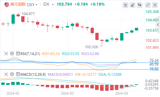 周一,因此前公布的关国经济数据表现较好,市场押注关联储6月降息的可能性降低,关元指数低开高走,最终收涨0.13%,报103.58。截至目前,美元报价。