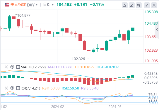 周四,因瑞士央行意外降息提振了美元,加上美国经济强劲增长,美元指数震荡上涨,最终收涨0.60%,报104。截至目前,美元报价。