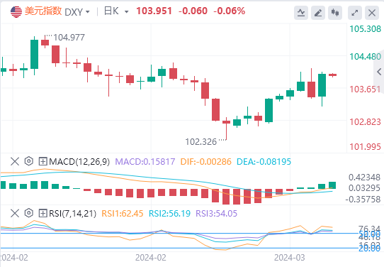 美元指数:截止发稿,美元指数交投于103.95附近。短期内,美元指数的走势预计将受到美联储对通胀的谨慎立场和全球货币政策行动的影响。这些因素表明,该指数的路径复杂多样,美联储即将做出的决定和国际经济指标在不久的将来塑造其方向方面发挥着关键作用。技术面上,周四出现了显着的反弹。收盘方向可能取决于交易者对50天和200天移动平均线的反应。跌破50日移动均线103.650将是疲软的迹象,下一个可能的目标为102.853。克服并维持200日移动均线103.697的反弹将意味着力量。这将瞄准每周高点104.149。这是加速上行的潜在触发点。