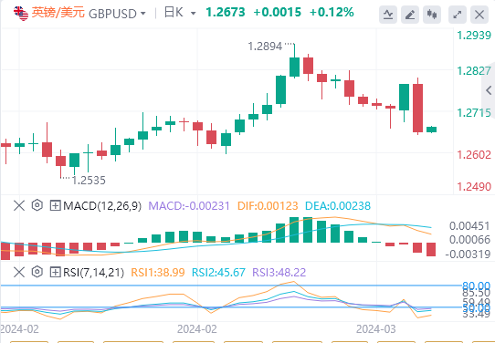 英镑:截止发稿,英镑/美元徘徊于1.2673附近。英镑/美元周四下跌,收报1.2657,跌幅1.01%。英国央行在周四举行的3月份会议上维持利率在5.25%不变,符合市场普遍预期。英国央行行长安德鲁-贝利(AndrewBailey)表示,经济还没有达到货币政策委员会(MPC)可以降息的地步,但经济正处在正确的轨道上。市场预计,英国央行在启动降息前需要薪资增长进一步放缓的证据。然而,投资者维持对英国央行今年降息的押注,英国央行决策者鸽派倾向对英镑(GBP)构成压力,并对英镑/美元构成利空。技术面上,汇价上行的初步阻力位于1.2757,进一步阻力位于1.2856,关键阻力位于1.2909;汇价下行的初步支撑位于1.2605,进一步支撑位于1.2552,更关键支撑位于1.2453