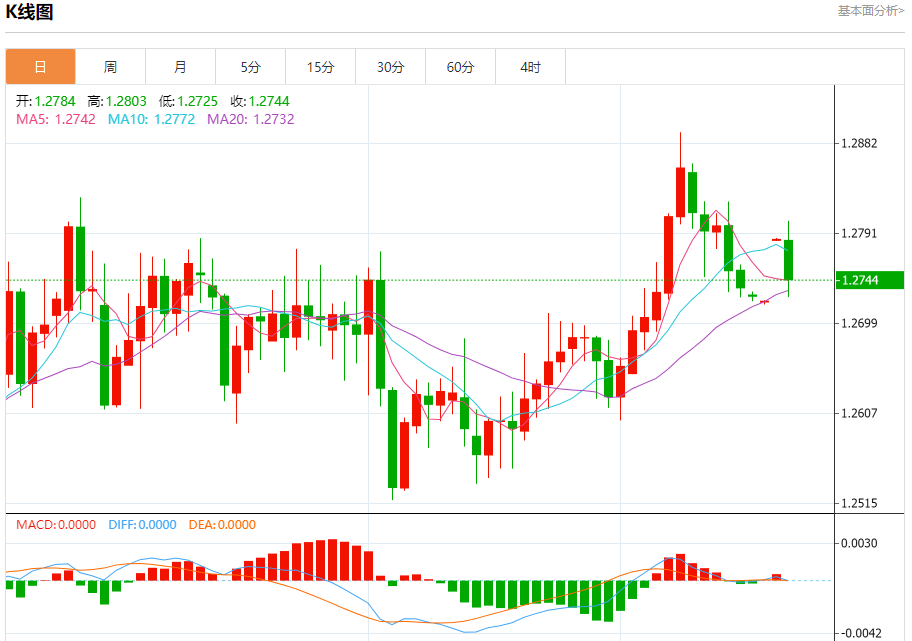 英镑/美元:截止北京时间21:24,英镑/美元下跌,现报1.2744,跌幅0.32%。纽市盘前,GBPUSD价格现在显示出一些看跌倾向,而EMA50为价格提供了积极的支撑,除非突破1.2745美元,然后突破1.2695美元并保持在1.2695美元以下,否则我们将继续看涨,提醒您我们的下一个主要目标位于1.2880。