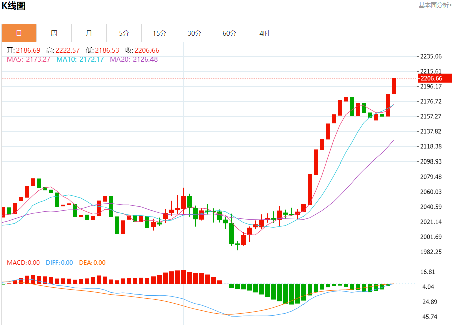 现货黄金:截止北京时间21:24,现货黄金上涨,现报2206.68,涨幅0.94%。纽市盘前,黄金价格现在交易为负,以测试关键支撑位2195.00美元,这敦促人们在即将到来的交易中保持谨慎,因为价格需要在此水平以上盘整,以保持看涨趋势在即将到来的时期有效,其下一个目标达到2235.00美元。