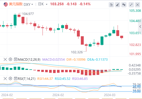 周三,因美联储利率决议发布后降息押注再度升温,美元指数加速下挫,最终收跌0.40%,报103.4。基准的10年期美债收益率收报4.2730%,对美联储政策利率最敏感的2年期美债收益率收报4.6040%。截至目前,美元报价103.258。