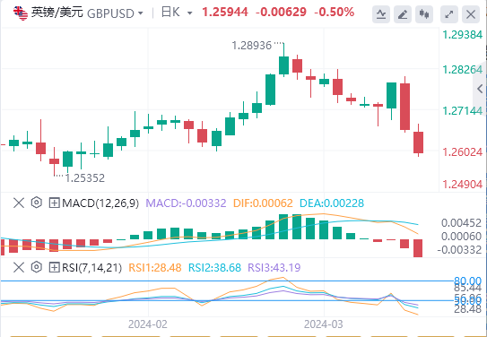 英国央行(BOE)在3月份的政策会议后如期将银行利率维持在5.25%。英国央行在声明中没有对政策转向的时间做出任何暗示。此外,没有一位决策者投票支持加息,而一位决策者投票支持降息。英国央行行长安德鲁-贝利(AndrewBailey)周五表示,市场可以预期今年将有不止一次降息,并补充说他对通胀正朝着目标迈进越来越有信心。英镑/美元继续承受着沉重的看跌压力,上一次交投于一个月来的最低水平1.2600附近。