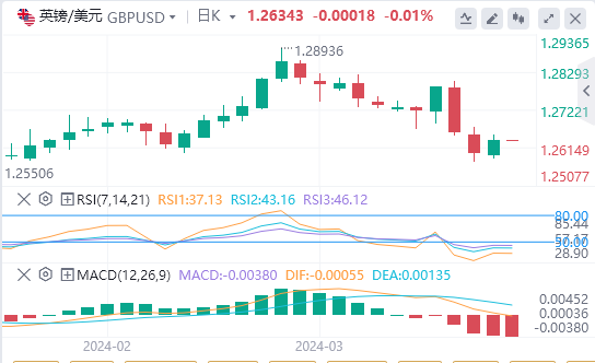 英镑:截止发稿,英镑/美元徘徊于1.26343附近。英镑/美元上周五上涨,收报1.2636,涨幅0.29%。英国方面,英国 CBI 分销贸易调查数据显示,3 月份月度零售销售余额从一年前的-7 上升至 2。预计经济将确认技术性衰退,因为国内生产总值初值继第三季度季率录得-0.1% 后,再度下降录得-0.3%。技术面上,英镑/美元在英镑缺乏额外催化剂的情况下,也设法从近期低点反弹。目前,英镑/美元正试图收于最近的阻力位1.2650 – 1.2685上方。