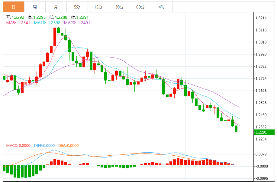 英镑:英镑/美元下跌,收报1.2294,跌幅0.40%。技术面上,汇价上行的初步阻力位于1.2350,进一步阻力位于1.2406,关键阻力位于1.2466;汇价下行的初步支撑位于1.2234,进一步支撑位于1.2174,更关键支撑位于1.2118。