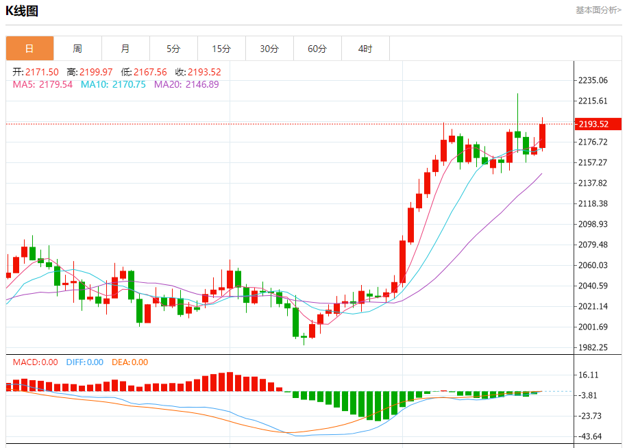 现货黄金:截止北京时间20:25,现货黄金上涨,现报2193.57,涨幅1.01%。纽市盘前,黄金价格现在恢复了积极的交易,并试图离开关键支撑位2166.50美元,以支持今天预期的看涨趋势的延续,这得到了EMA50的良好支持,等待测试2222.86美元作为第一站。