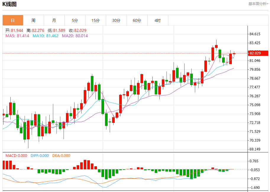 原油市场:截止北京时间20:25,美油上涨,现报82.035,涨幅0.08%。纽市盘前,原油价格显示横盘交易并测试82.00美元的障碍,等待收集积极的动力,以帮助推动价格恢复预期的看涨趋势。这一趋势的目标从83.56美元开始,在超过前一水平后延伸至85.00美元。