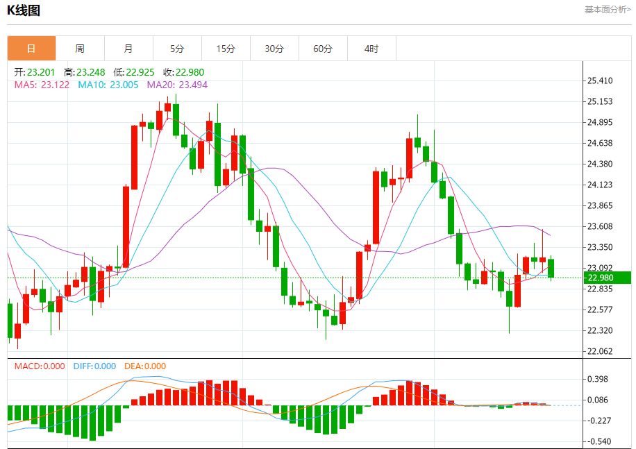 现货白银:截止北京时间20:21,现货白银下跌,现报22.996,跌幅0.97%。纽市盘前,白银价格在EMA50附近徘徊,我们的中立仍然有效,直到价格根据23.00水平确认其情况,以明确检测下一个目标。