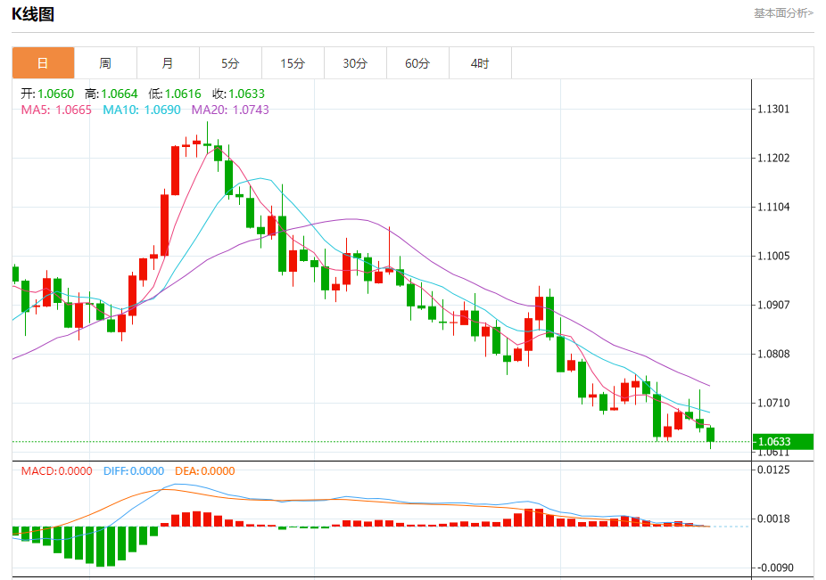 欧元/美元:截止北京时间20:21,欧元/美元下跌,现报1.0634,跌幅0.26%。纽市盘前,欧元兑美元在今天早上试图突破1.0635水平后显示出积极的交易,在再次转向下跌之前,它可能会测试图表上出现的熊市通道的阻力。