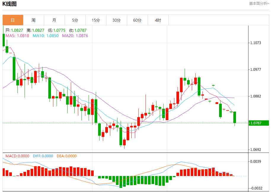 欧元/美元:截止北京时间20:25,欧元/美元下跌,现报1.0788,跌幅0.37%。纽市盘前,受双顶形态的影响,欧元兑美元的价格恢复其负交易,接近我们等待的第一个目标1.0765美元,双顶形态支持超越上述水平的机会,从而为下一个负目标1.0645美元开辟道路。