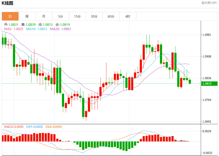 欧元/美元:截止北京时间20:25,欧元/美元下跌,现报1.0820,跌幅0.11%。纽市盘前,自上午以来,欧元兑美元的价格没有显示出任何强劲的走势,并继续在1.0830美元左右波动。今天的预期看跌趋势没有变化,这取决于价格稳定在1.0860美元以下。