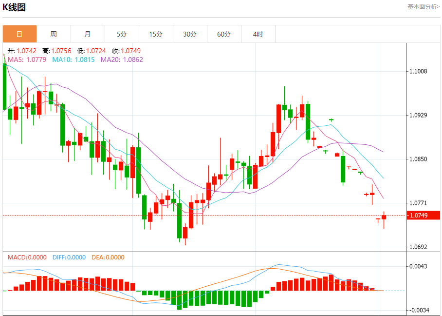 欧元/美元:截止北京时间20:24,欧元/美元上涨,现报1.0747,涨幅0.04%。纽市盘前,自上午以来,欧元兑美元价格没有显示出任何强劲的走势,稳定在1.0740美元左右的水平,因此,今天的预期看跌趋势没有变化,其下一个目标位于1.0645美元。