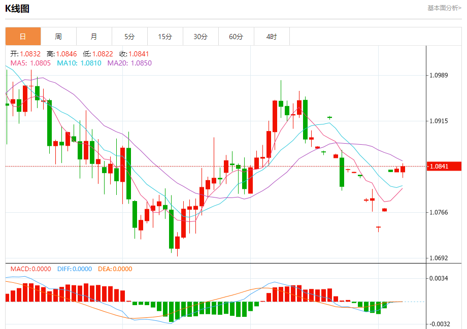 欧元/美元:截止北京时间20:21,欧元/美元上涨,现报1.0843,涨幅0.05%。纽市盘前,欧元兑美元价格在1.0840美元附近徘徊,等待负面动机。预期恢复稳定在1.0860美元以下的看跌趋势。