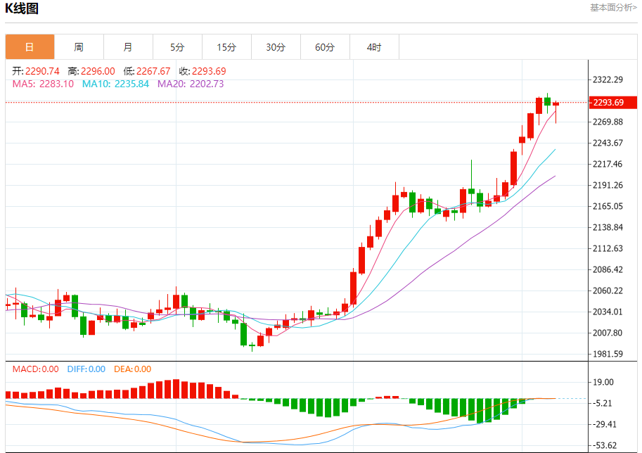 现货黄金:截止北京时间20:21,现货黄金上涨,现报2293.43,涨幅0.12%。纽市盘前,黄金价格在前几个交易日下跌后恢复涨势。逼近2300.00美元的关口,等待更多的上涨超越这一水平。