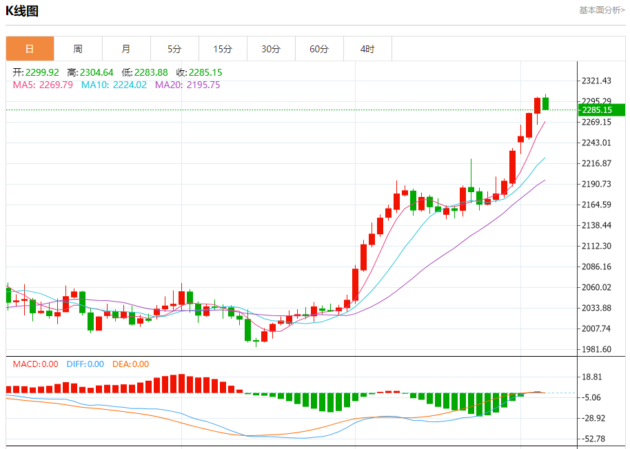 现货黄金:截止北京时间20:21,现货黄金下跌,现报2284.97,跌幅0.63%。纽市盘前,受随机利空的影响,黄金价格目前处于负值。它可能会测试在2260.00美元形成的关键支撑位,然后再转向上涨。