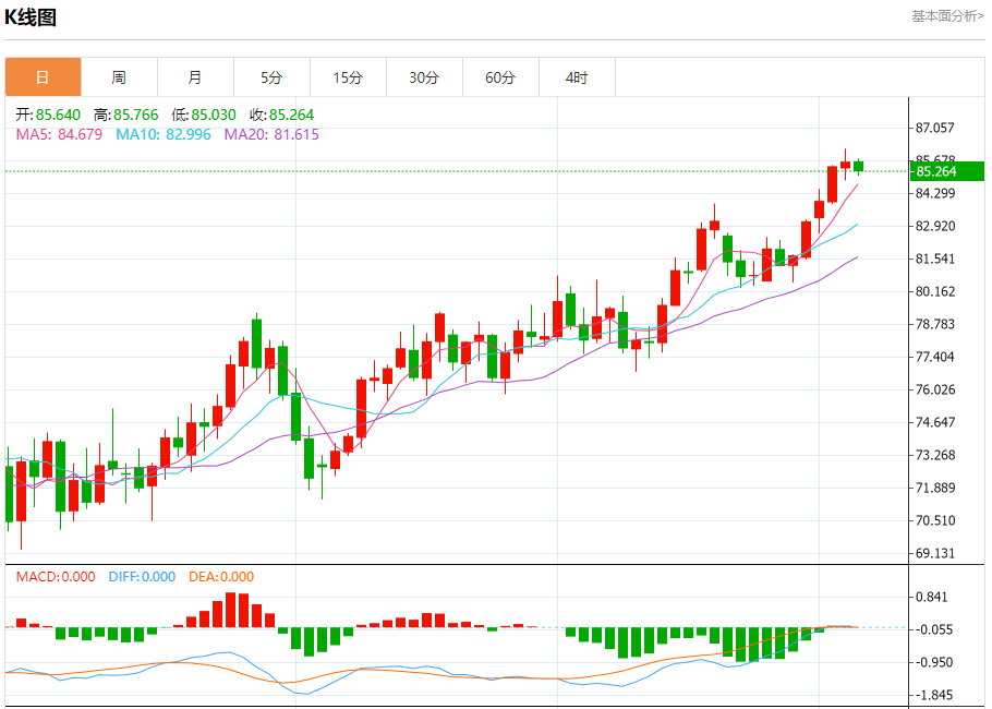 原油市场:截止北京时间20:21,美油下跌,现报85.264,跌幅0.40%。纽市盘前,原油价格下跌,逼近关键支撑位85.05美元。试图再次恢复,价格需要获得积极的动机,支持在即将到来的时期继续预期的看涨浪潮的机会。