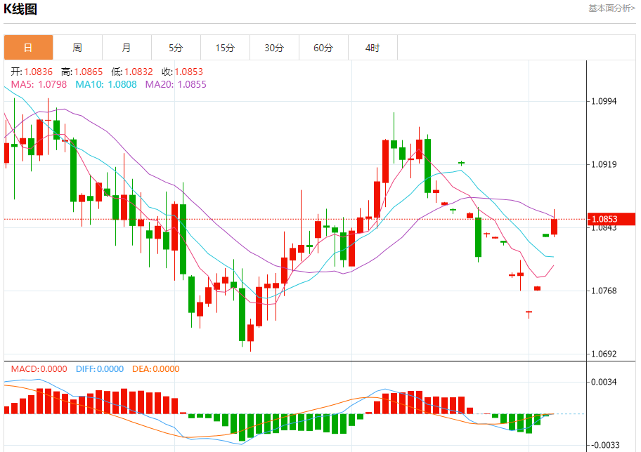 欧元/美元:截止北京时间20:21,欧元/美元上涨,现报1.0854,涨幅0.16%。纽市盘前,欧元兑美元价格现在正在测试关键阻力1.0860美元,这是除1.0765美元支撑线外的下一个趋势关键阻力之一。价格需要超过其中一个水平才能清楚地发现它的下一个目的地。