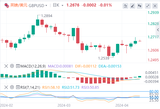 英镑:截止发稿,英镑/美元徘徊于1.2676附近。英镑/美元周二上涨,收报1.2677,涨幅0.18%。英国预算责任办公室最新预测显示,随着国内需求的复苏,英国经济今年预计将增长0.8%。英国国内生产总值月度数据将于周五公布。如果国内生产总值数据强于预期,英央行可能会减缓宽松周期,并提升英镑/美元。市场目前预计英国央行(BOE)今年将降息75个基点(bps),这将使基准利率从目前的5.25%降至4.5%。技术面上,汇价上行的初步阻力位于1.2709,进一步阻力位于1.2741,关键阻力位于1.2773;汇价下行的初步支撑位于1.2645,进一步支撑位于1.2613,更关键支撑位于1.2581。