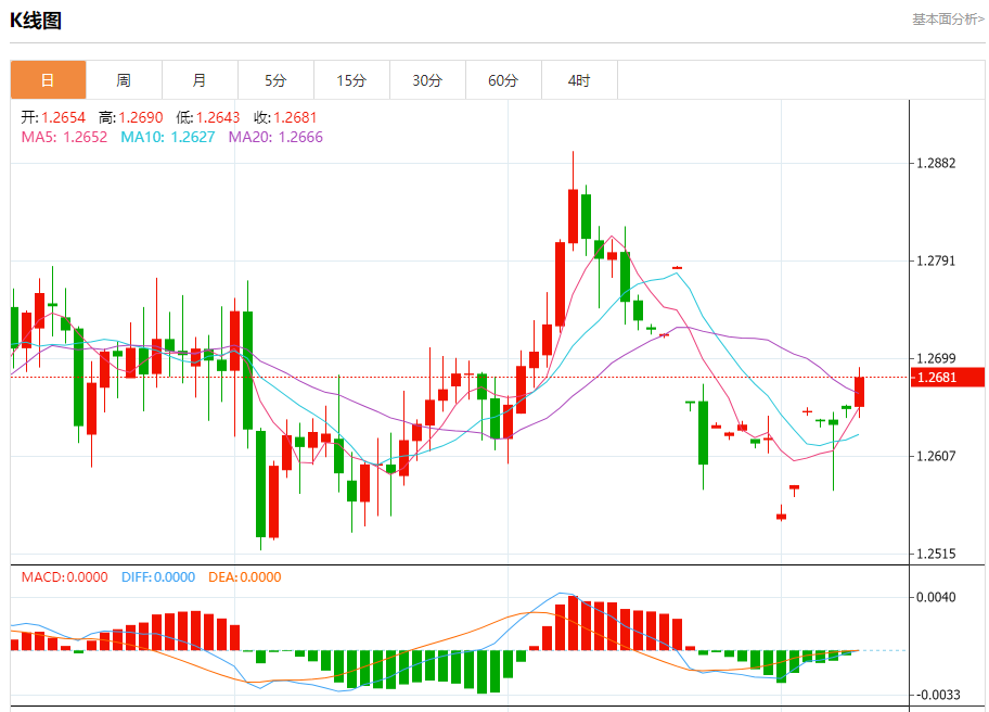 英镑/美元:截止北京时间20:25,英镑/美元上涨,现报1.2683,涨幅0.22%。纽市盘前,自上午以来,GBPUSD对显示出疲软的交易,等待获得积极的动机,以帮助推动价格继续上涨并实现我们在1.2700美元的第一个目标,以保持今天的看涨趋势情景活跃,并得到EMA50m的支持,提醒您突破上述水平将推动价格向1.2800美元的下一个目标迈进,而保持在1.2580美元以上代表实现等待目标的主要条件。