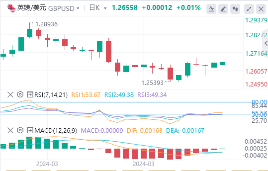 英镑:截止发稿,英镑/美元徘徊于1.26558附近。英镑/美元周一上涨收报1.2654,涨幅0.14%。积极的市场情绪令美元承压,但下行尝试可能仍然有限。预计投资者将在周三公布美国消费者物价指数(CPI)数据之前保持谨慎态度。技术面上,如果这次尝试成功,英镑/美元将获得额外的上行动能,并走向下一个阻力位1.2800 - 1.2825。RSI处于温和区域,如果出现合适的催化剂,则有足够的空间获得动力。