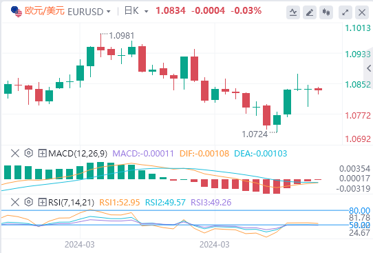 收益率上升提振了美元,衡量美元兑六种主要货币的美元指数交投在104.35附近。欧元兑美元下跌0.04%,至1.0831美元,英镑兑美元交投在1.2627美元,当日下跌0.07%。