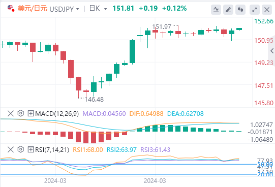 日元兑美元汇率下跌0.11%,至1美元兑151.77日元,交易商仍对日本当局可能进行的干预保持警惕。