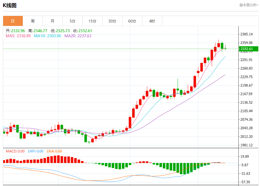 现货黄金:截止北京时间20:24,现货黄金下跌,现报2332.73,跌幅0.03%。纽市盘前,黄金价格在横盘轨道内波动,并在2340.00美元附近稳定,等待激活随机指标的积极信号,以推动价格恢复今天的预期看涨趋势,目标主要是2370.00美元,其次是2400.00美元。