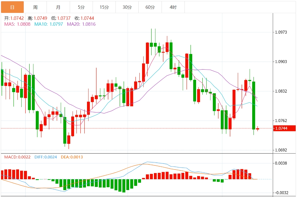 欧元兑美元在1.0745附近失去上涨动能。 美国通胀数据好于预期,推动美元升至年线高点,给欧元兑美元货币对带来了一定的抛售压力。 欧洲央行利率决议将成为周四稍后的焦点,预计欧央行将使利率稳定在历史高点。市场普遍预计欧洲央行将维持关键利率不变。在政策宣布之后,欧洲央行行长克里斯蒂娜·拉加德(Christine Lagarde)将就政策前景发表讲话,并回答媒体提问。