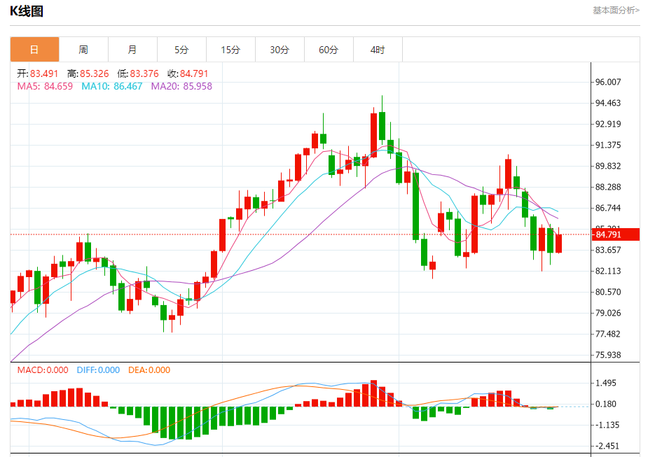 原油市场:截止北京时间20:22,美油上涨,现报84.790,涨幅1.56%。纽市盘前,原油价格显示出积极的尝试,并测试对价格形成良好日内阻力的EMA50,以保持今天的看涨趋势,提醒你我们的目标从86.55开始,在超过前一水平后延伸至88.70。