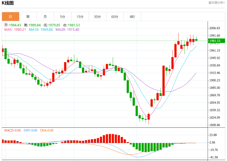 现货黄金:截止北京时间20:22,现货黄金下跌,现报1981.59,跌幅0.15%。纽市盘前,黄金价格在看涨通道的支撑线附近波动,得到EMA50的持续积极支持,这支持了在该通道内继续上涨的机会,并朝着实现我们从2000.00开始并延伸到2016.90的积极目标前进。