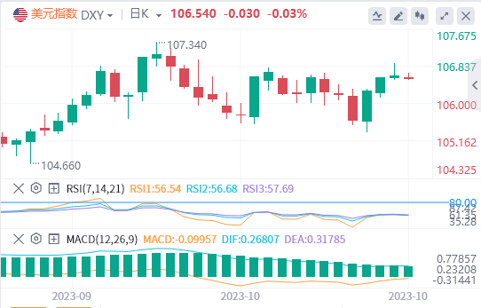 技术面:数据显示,美国第三季度GDP季率为4.9%,为2021年第四季度以来的最快增速。此外,时段内欧洲央行暂停加息也对汇价构成了一定的支撑。今日关注107.20附近的压力情况,下方支撑在106.20附近。