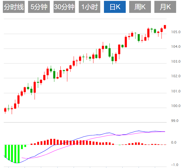 周四亚盘,美元指数延续反弹走势,目前徘徊于105.55关口,非美货币走低。隔夜美元从主要货币中最弱转变为最强。在明天早上的英国央行利率决定之前,英镑是最弱的。