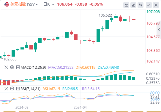 美元兑日元本周需关注日本央行利率决议。如果日元继续抛售,美元指数可能会得到进一步支撑。本周五的日本央行政策决定将成为焦点。尽管日本央行在3月份进行了17年来的首次加息,但交易员们仍然青睐收益率较高的外币而非日元。虽然政策利率8年来首次回到零以上,但这未能减缓日元的跌势。交易员希望日本央行对进一步收紧政策做出更有力的承诺。但据媒体报道,预计本次会议不会进一步收紧政策,投资者认为到7月份加息10个基点的可能性不到50%。这是日本央行需要解决的问题,否则支持日元的唯一其他解决方案就是通过外汇干预,而这种可能性正变得越来越大。从技术面来看,美元/日元从低点反弹,表明日线图上正在形成潜在的锤形蜡烛。价格收于当前水平附近,大约在154.50附近,这可能预示着价格可能继续向155.00关口靠近,甚至可能突破该关口,届时日本政府可能会进行干预。支撑位在154.00附近,其次是153.35附近。长期支撑位在151.90至152.00之间,该区域曾在2022年10月和2023年11月成为重要阻力位,今年3月底和4月初的阻力位较小。