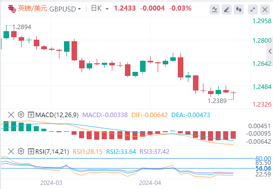英镑/美元在亚洲时段跌至 11 月以来最弱水平 1.2400 下方。进入欧洲时段后,该货币对逆转方向,回升至 1.2430。