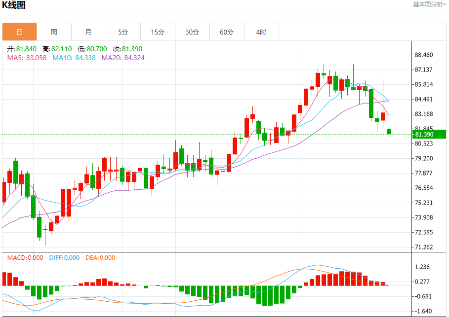 原油市场:截止北京时间20:22,美油下跌,现报81.400,跌幅0.99%。纽市盘前,原油价格现在试图突破81.50美元的水平,等待确认破位反弹至79.60美元,这是我们的下一个修正目标。