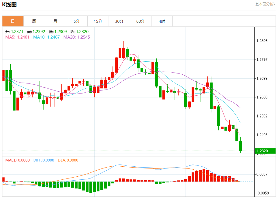 英镑/美元:截止北京时间20:22,英镑/美元下跌,现报1.2321,跌幅0.41%。纽市盘前,GBPUSD价格恢复其负面交易,从1.2385美元水平离开,这支持了今天预期的熊市趋势的延续,等待访问1.2265美元作为下一个主要目标。